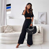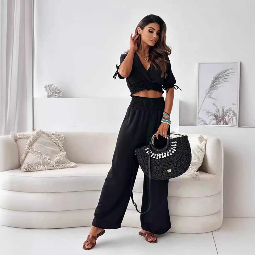 Paket beinhaltet: 1* 2-teiliges Set: Oberteil mit V-Ausschnitt, Hose mit weitem Bein