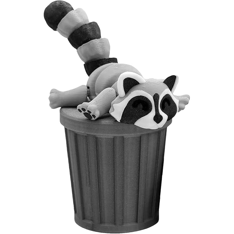 3D-gedruckter Waschbär mit Mülleimer-Dekoration