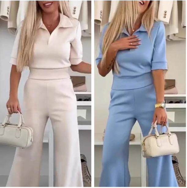 😍2-teiliges Set aus einfarbigem Reversoberteil und Hose mit weitem Bein