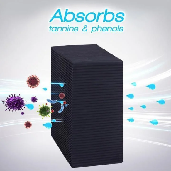Der Reiniger besteht aus ultraabsorbierender Aktivkohle, die in eine Wabenstruktur voller Mikrotunnel gepackt wird. Das hochporöse Material verfügt über eine große Oberfläche und absorbiert wirksam giftige Schadstoffe aus dem Wasser. Der Luftreiniger ist 24 Stunden am Tag in Betrieb. Es wirkt dank seiner physikalischen Reinigungseigenschaften. Es benötigt keinen Strom und ist nicht auf schädliche Chemikalien angewiesen.