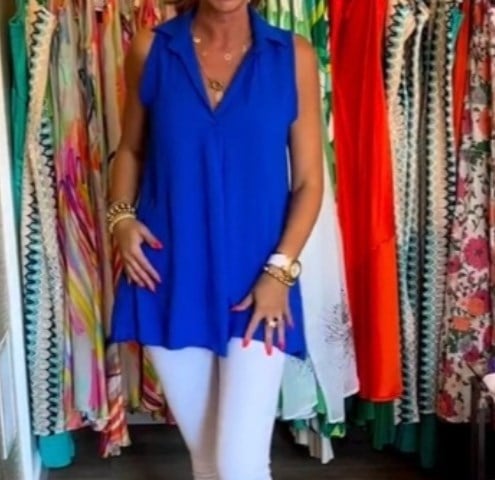 - 1 × Ärmelloses, gerafftes Oberteil mit Revers