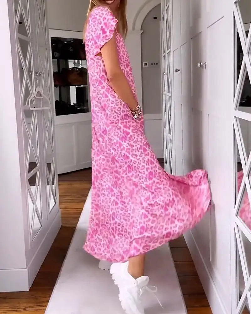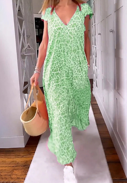 🌸 Frühlingsaktion 50 % RABATT ✨ V-Ausschnitt Bedrucktes Kurzarm-Maxikleid
