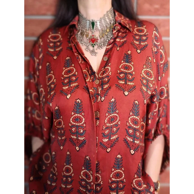 Paket beinhaltet: 1 * Damenmode, lockeres, lässiges, bedrucktes Hemd und gestreifte Hose mit weitem Bein