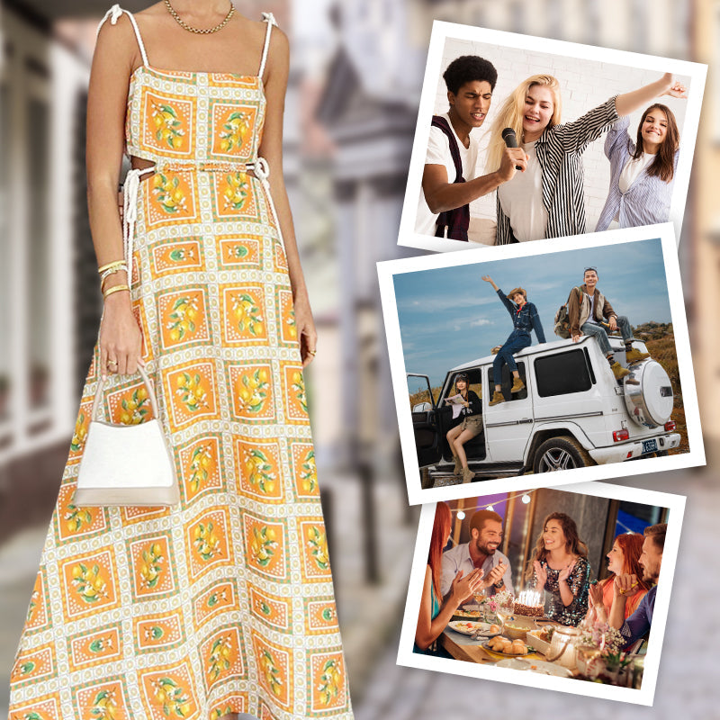 MÜHELOSER CHARME: Dieses Maxikleid verkörpert mit seinem lebendigen, Vintage-inspirierten Druck eine entspannte und dennoch stilvolle Ästhetik. Die komplizierten Quadrate und Muster verleihen ihm eine einzigartige Note und machen ihn perfekt für Sommerausflüge, Strandurlaube oder zwanglose Zusammenkünfte.