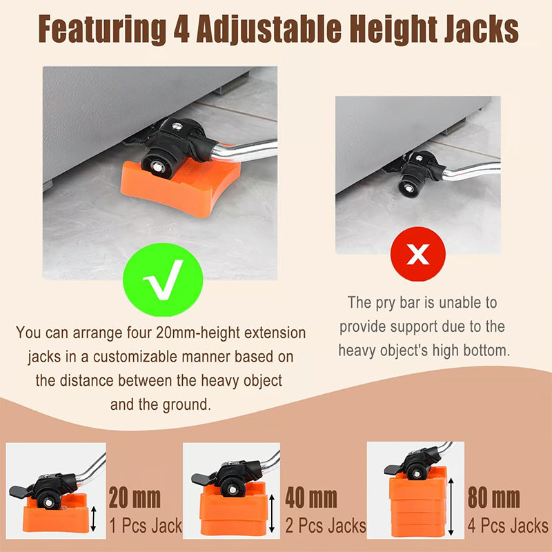 GUTER HELFER BEIM MÖBELTRANSPORT – Unser Set umfasst 4 Möbelroller, 1 Hebewerkzeug und 4 Pads. Dieses Möbelheber-Set ist dafür konzipiert, schwere Möbel, Geräte und große Gegenstände mühelos zu bewegen und zu unterstützen.