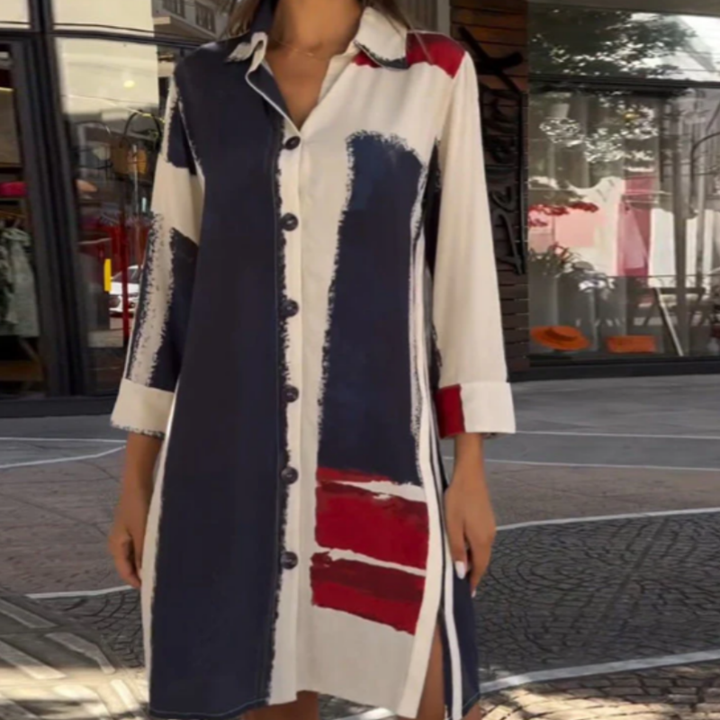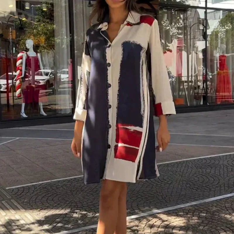 ✨Lässiges Damen-Hemdkleid mit Farbblockdesign und Knopfleiste vorne