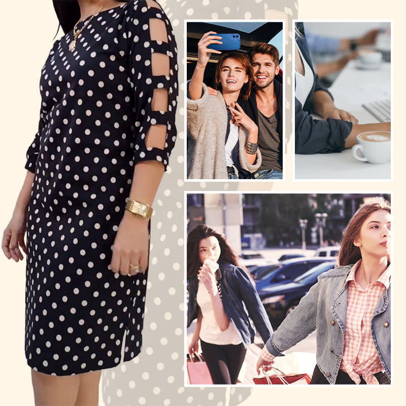 50 % Rabatt!🌟Women's Polka Dot Ausschnitt Ärmel Knielanges Kleid💞💞Trendige neue Produkte