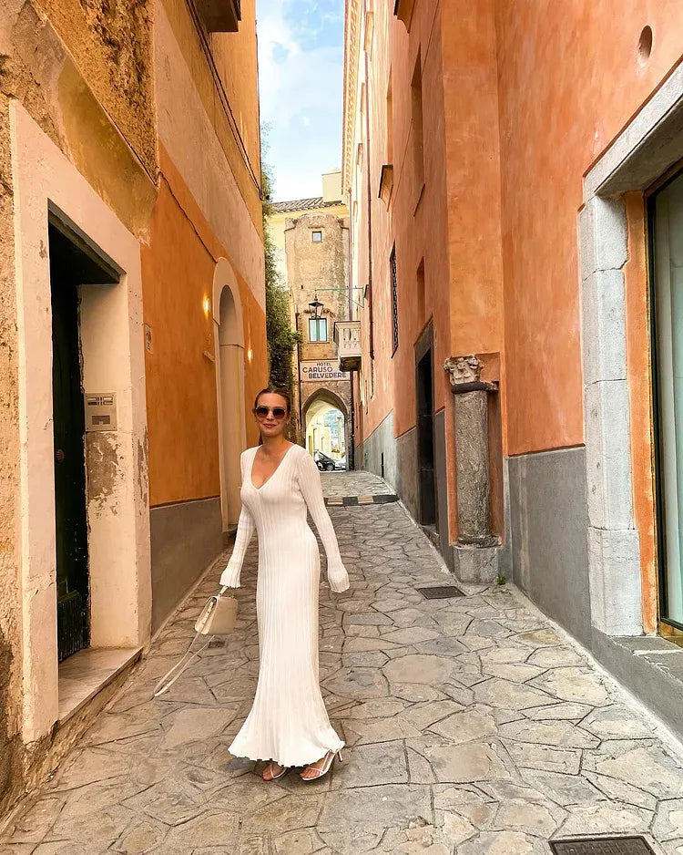 Das ärmellose Strick-Midi-Kleid für den Herbst 2024 ist so konzipiert, dass es mit seiner Rippstrickkonstruktion und A-Linien-Silhouette eine schmeichelhafte Passform bietet. Dieses Kleid besteht aus einem weichen und dehnbaren Stoff und eignet sich ideal für den täglichen Gebrauch. Der gerippte Stoff erzeugt eine schlanke und stilvolle Form, perfekt für alle Arten von Anlässen.
