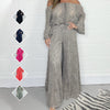 Erleben Sie ätherische Eleganz mit diesem exquisiten Zweiteiler. Die verführerischen Schulterpartien des Oberteils zaubern eine attraktive und feminine Silhouette und rahmen die Schultern wunderschön ein. Die weite Hose mit hoher Taille sorgt für einen entspannten, lässigen Look, der das enge Oberteil sanft ergänzt.