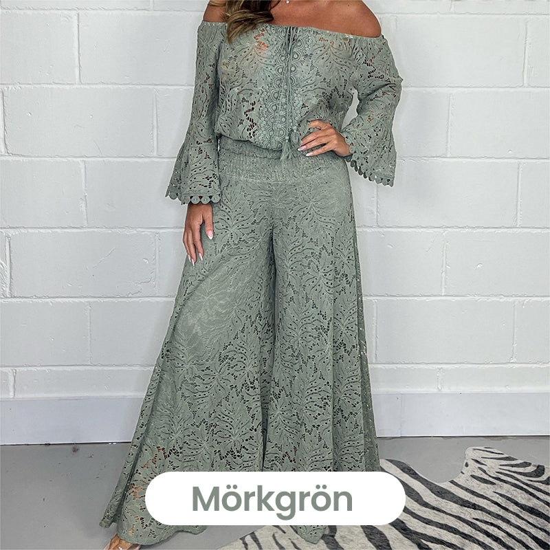 ⏰ Zeitlich begrenztes Angebot – 50 % Rabatt! 🎀 Elegantes Set aus Spitzentop und Hose mit weitem Bein – müheloser Stil in einem Look!