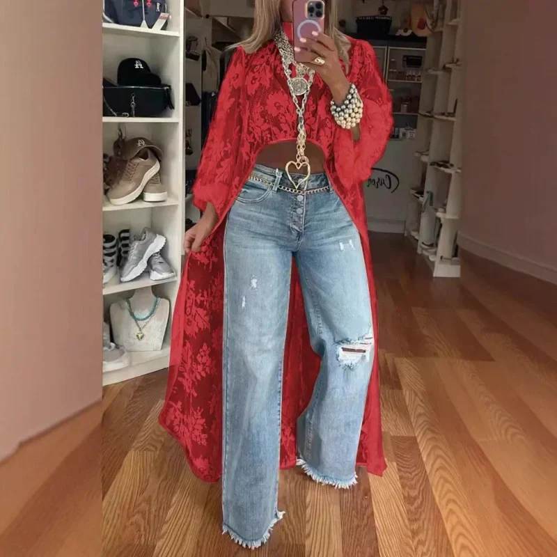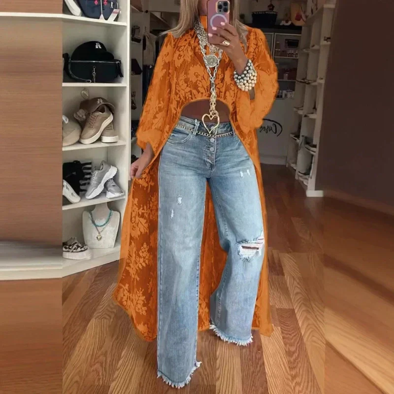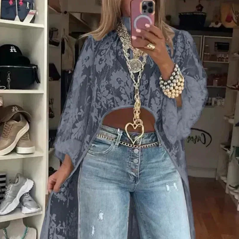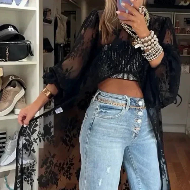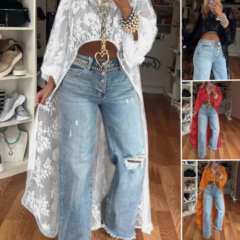 🔥Durchsichtiges, elegantes Maxi-Top mit Spitzenmuster