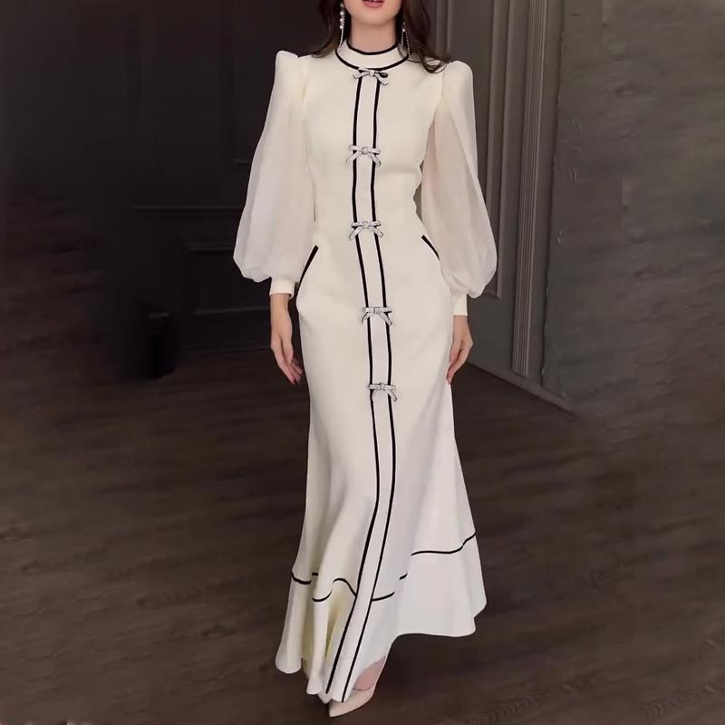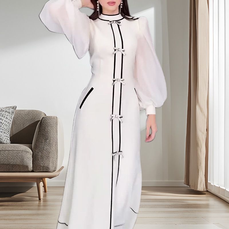 SCHMEICHELHAFTES DESIGN: Dieses elegante Maxikleid mit halbem Rollkragen und einer stilvollen Schleife vorne betont die Taille und zaubert eine schlankere, definierte Silhouette. Perfekt für entspannte Ausflüge oder besondere Anlässe, bei denen Sie gut aussehen möchten!