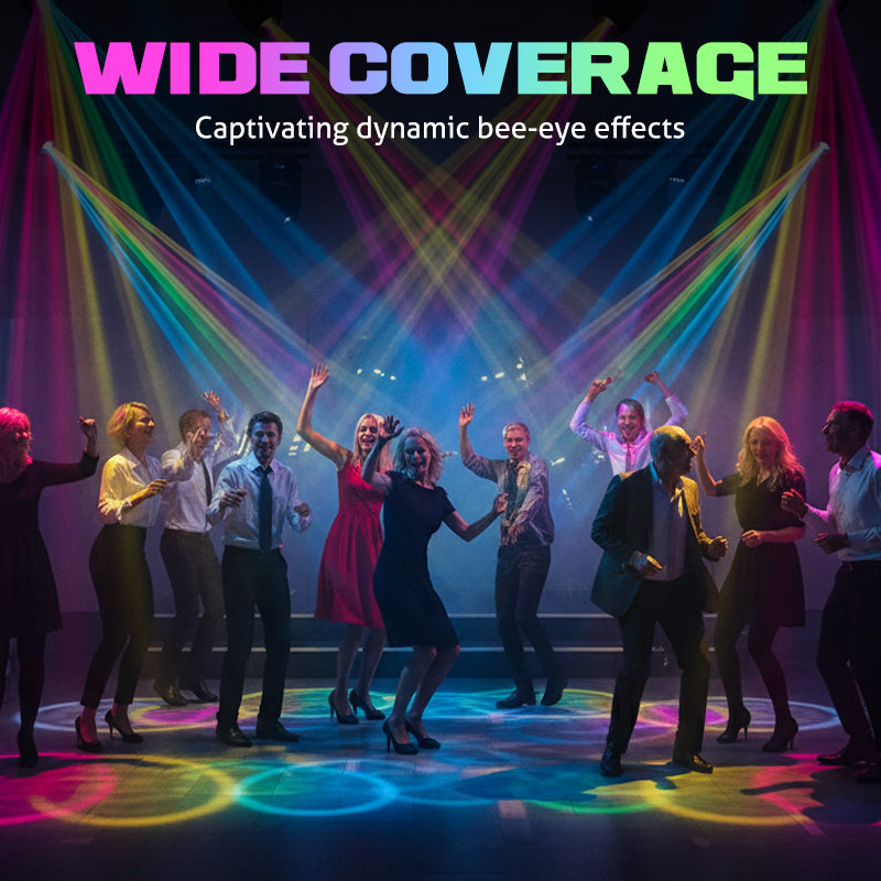 INTEGRIERTE BEE-EYE-LINSE â Die zentrale Bee-Eye-Linse erzeugt einen faszinierenden Wash-Effekt mit mehreren scharfen Strahlen. Sie verleiht Ihrer Beleuchtungsanlage Tiefe und KomplexitĂ€t und sorgt fĂŒr professionelle Visuals fĂŒr BĂŒhnen, Clubs und Partys.