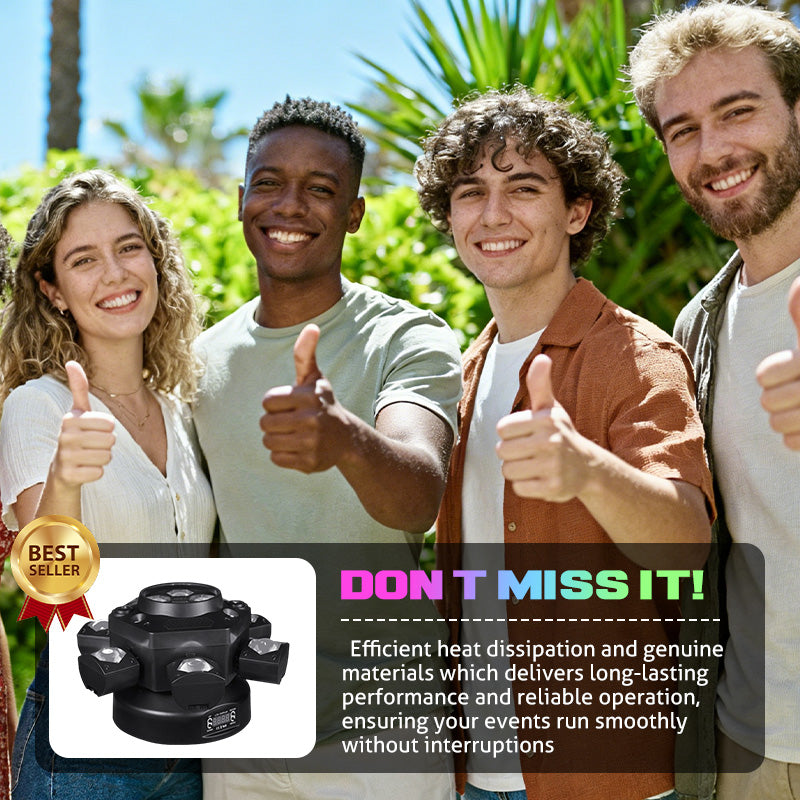 DYNAMISCHES SECHSARMIGES DESIGN â VerfĂŒgt ĂŒber sechs unabhĂ€ngig voneinander bewegliche Arme, die jeweils einen leistungsstarken Lichtstrahl projizieren. Dies sorgt fĂŒr atemberaubende, raumfĂŒllende Effekte und energiegeladene Lichtshows, die jedes Publikum begeistern und die AtmosphĂ€re Ihrer Veranstaltung unterstreichen.