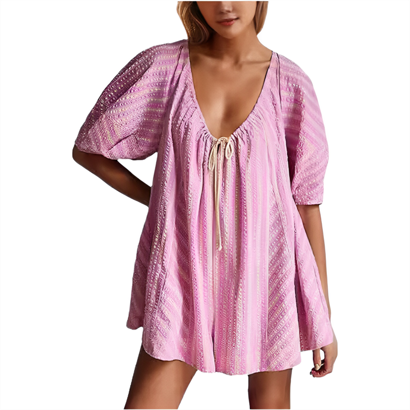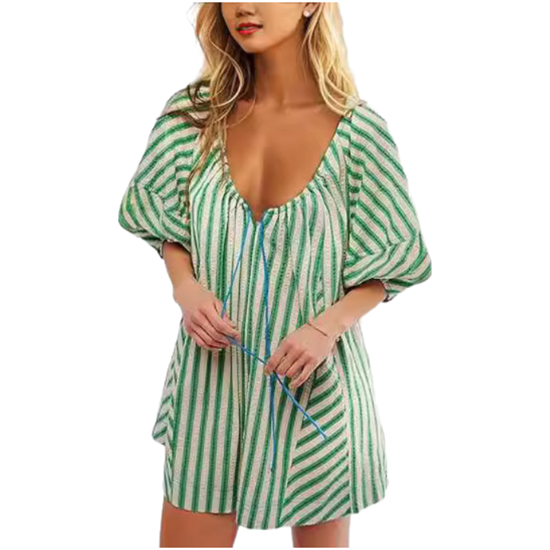 BEQUEMER STOFF – Diese lockeren Ramper bestehen aus weichem Polyestergewebe, haben eine lockere Passform, einen tiefen Rundhalsausschnitt und Puffärmel und sorgen so für Komfort und Bequemlichkeit.