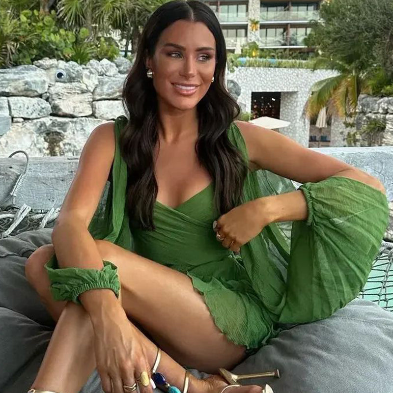 ⏳Begrenzte Zeit 50% Rabatt💥Wickelkleid mit V-Ausschnitt, geschlitzten Ärmeln und Bindegürtel in der Taille