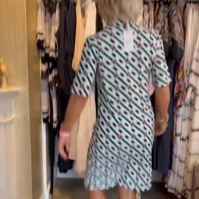 1 x Kurzarmkleid mit Hemdkragen und geometrischem Muster