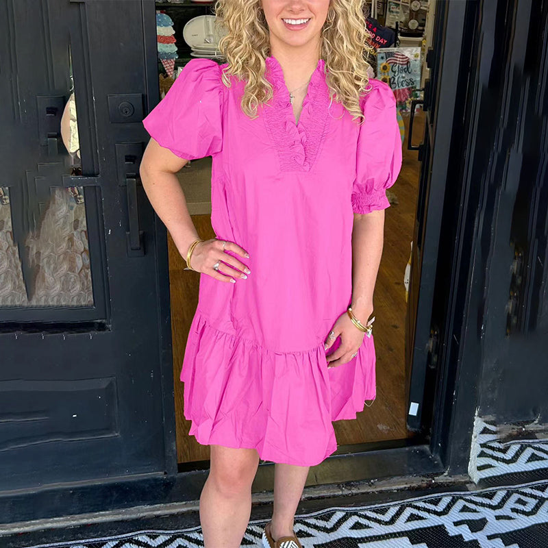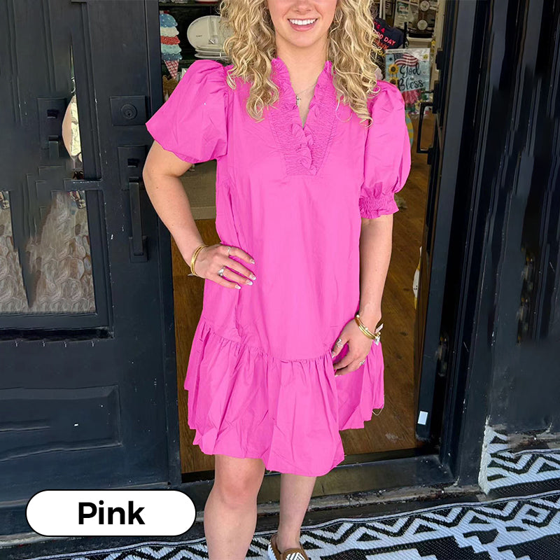 PUFF-ÄRMEL – Mit puffigen Kurzärmeln, die einen trendigen, jugendlichen Look verleihen und Volumen sowie niedliche Details zum Design des Kleides hinzufügen.