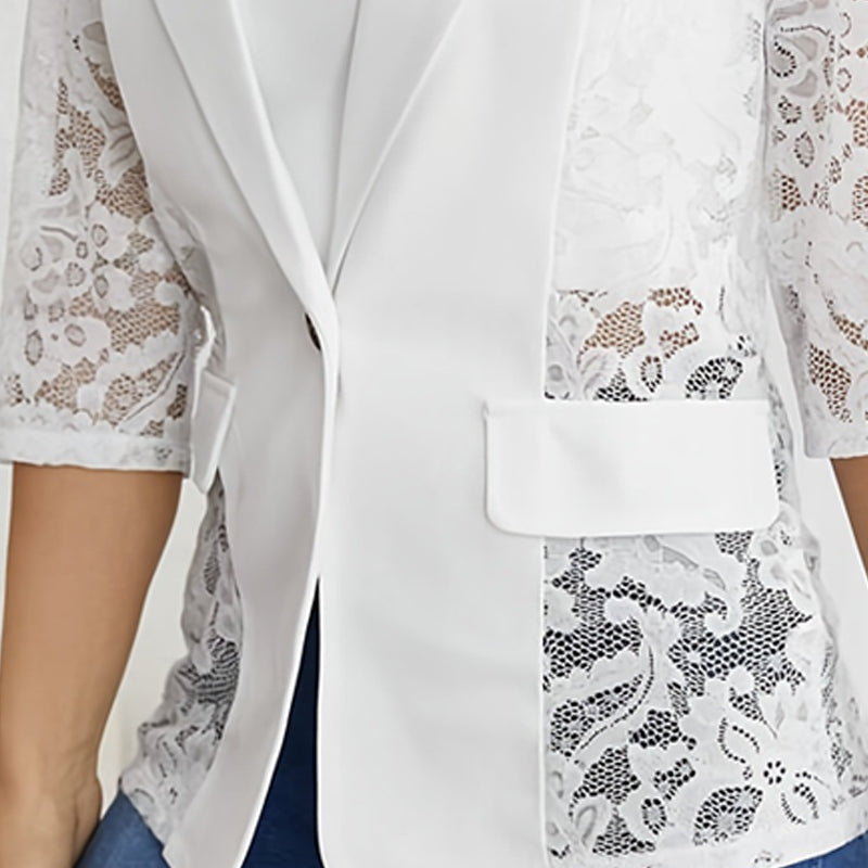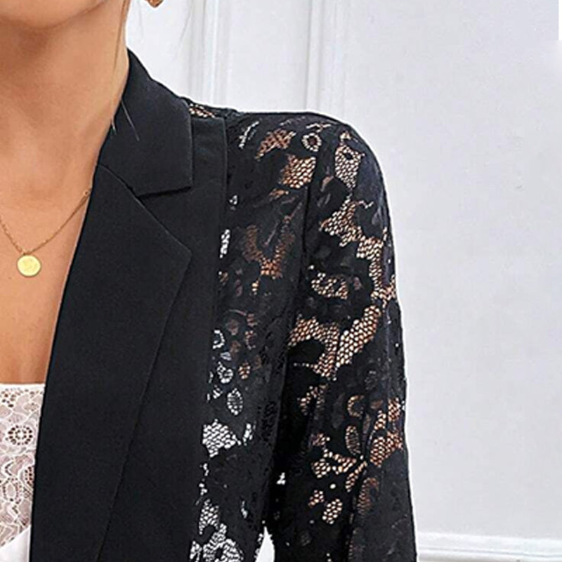 1× Eleganter Damenblazer mit transparenter Spitzenverzierung