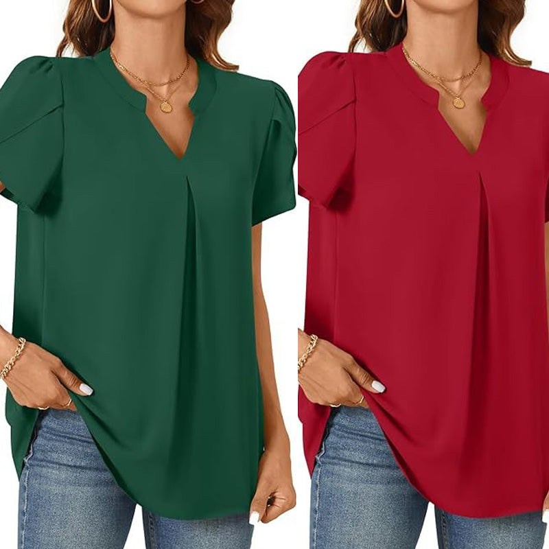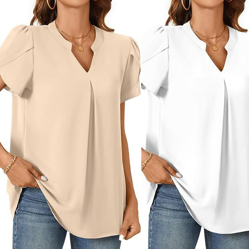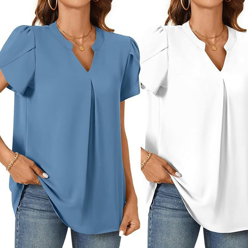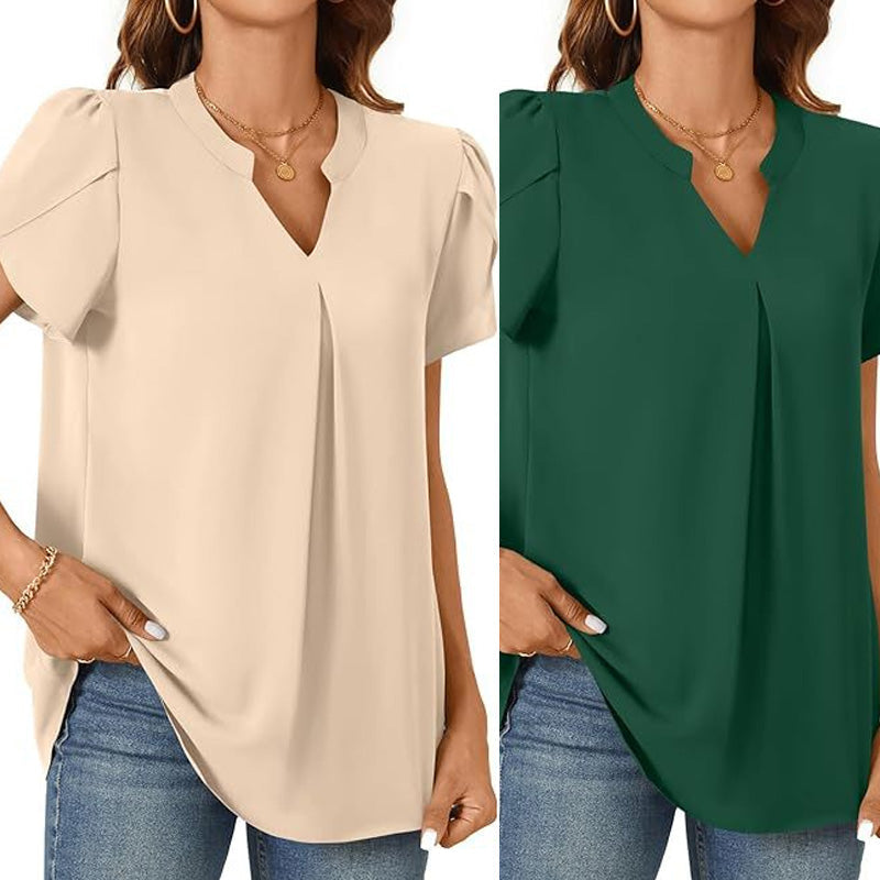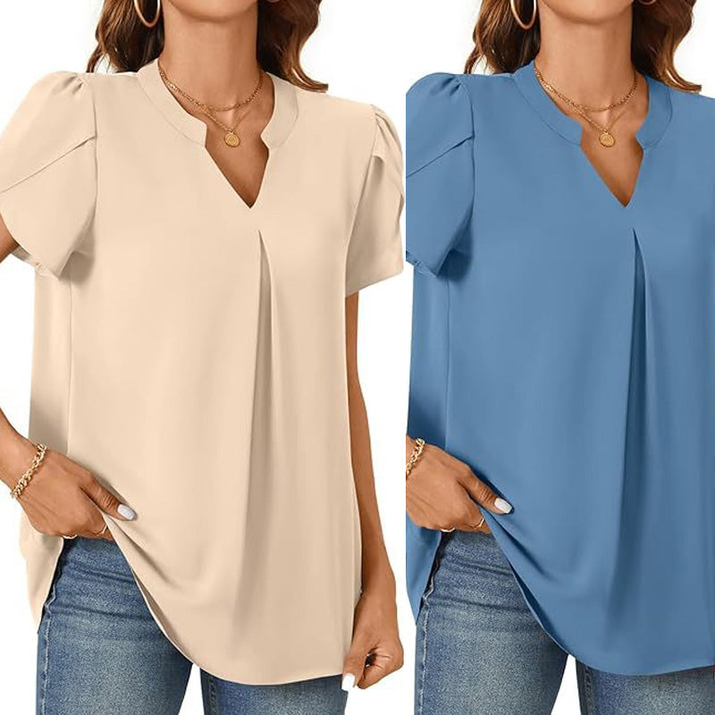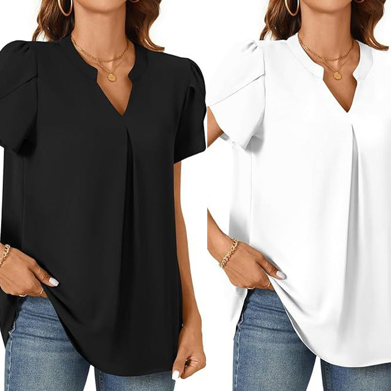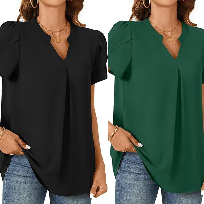 1 * Damen-Oberteil mit V-Ausschnitt und kurzen Ärmeln