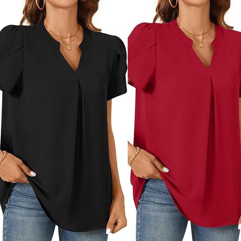 Damen V-Ausschnitt Uni Top mit kurzen Ärmeln