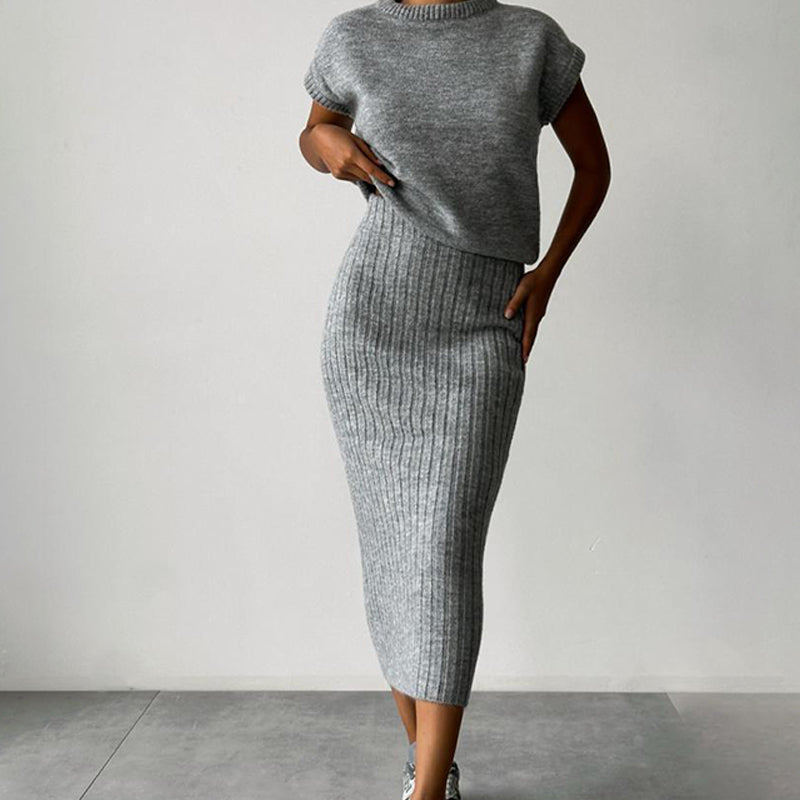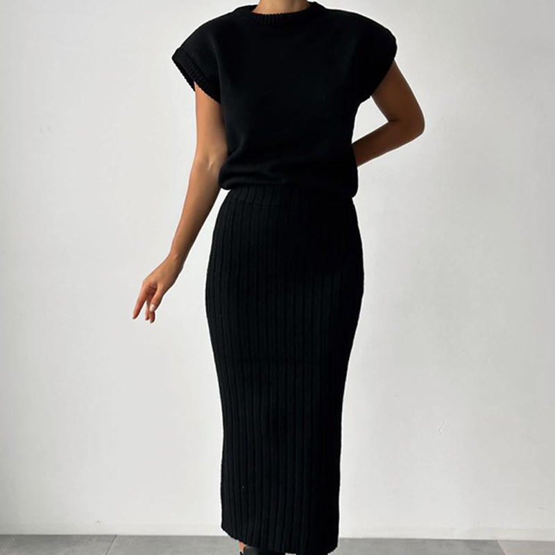 💃2-teiliges Set aus ärmellosem Pullover und Midirock für Damen