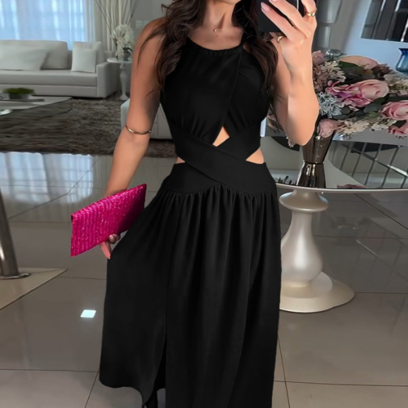 Paket beinhaltet: 1 * Sexy Damen-Kleid mit taillierten, gekreuzten Trägern, rückenfreiem Neckholder, langem Kleid