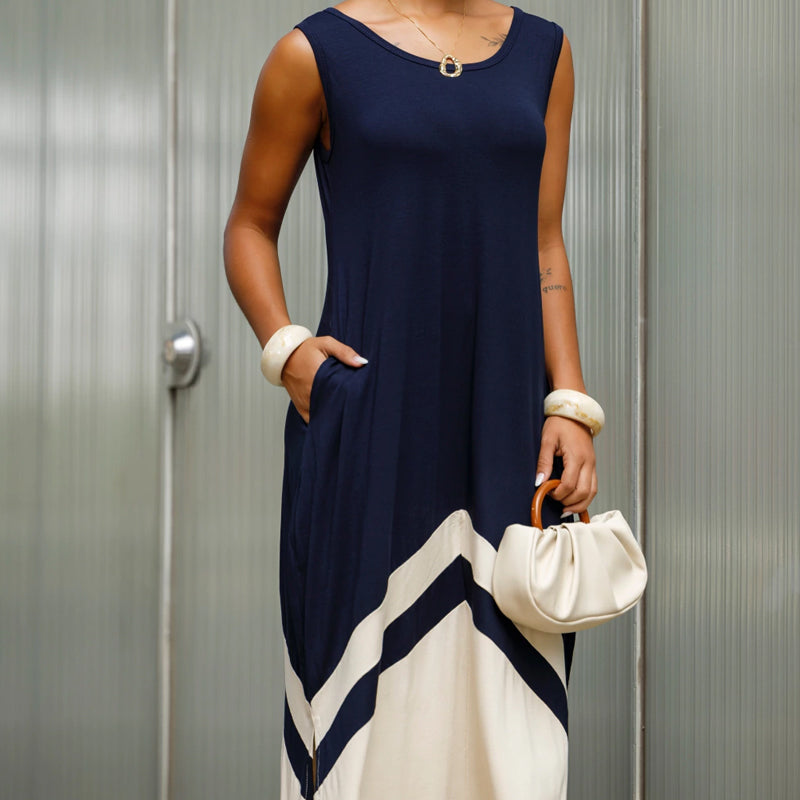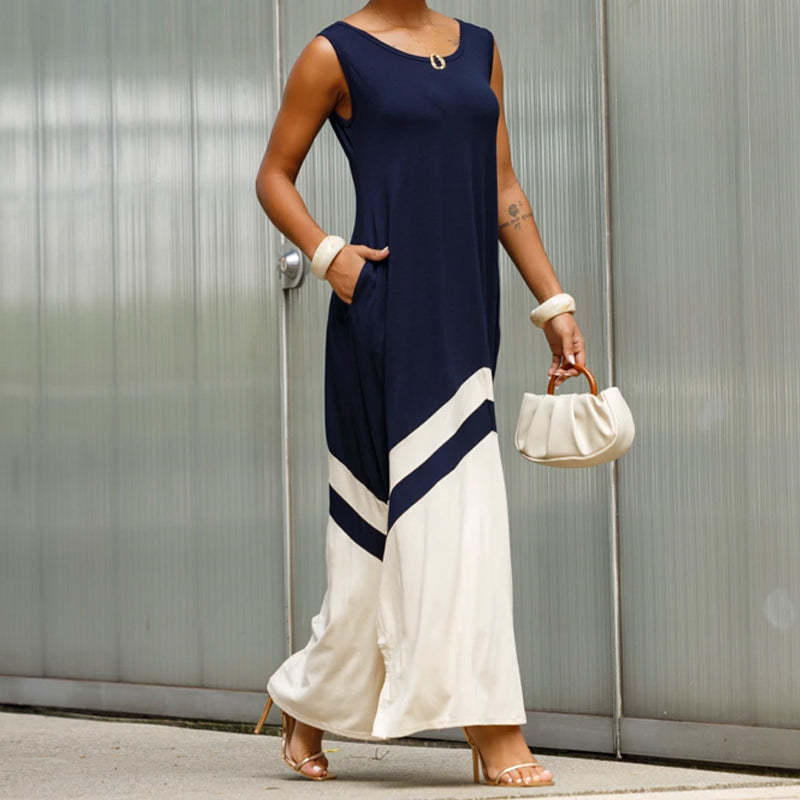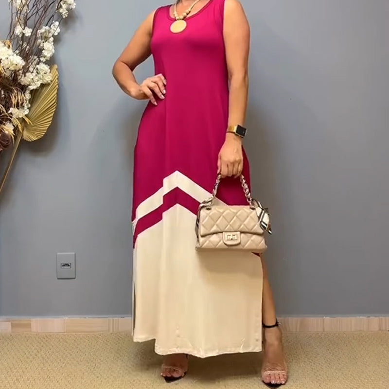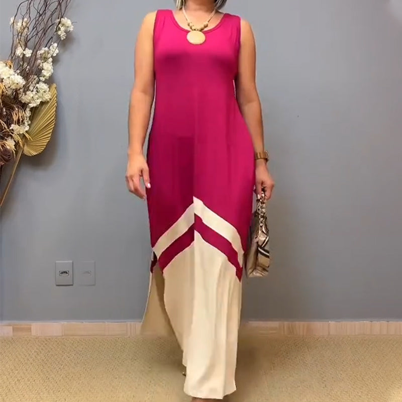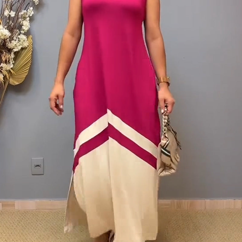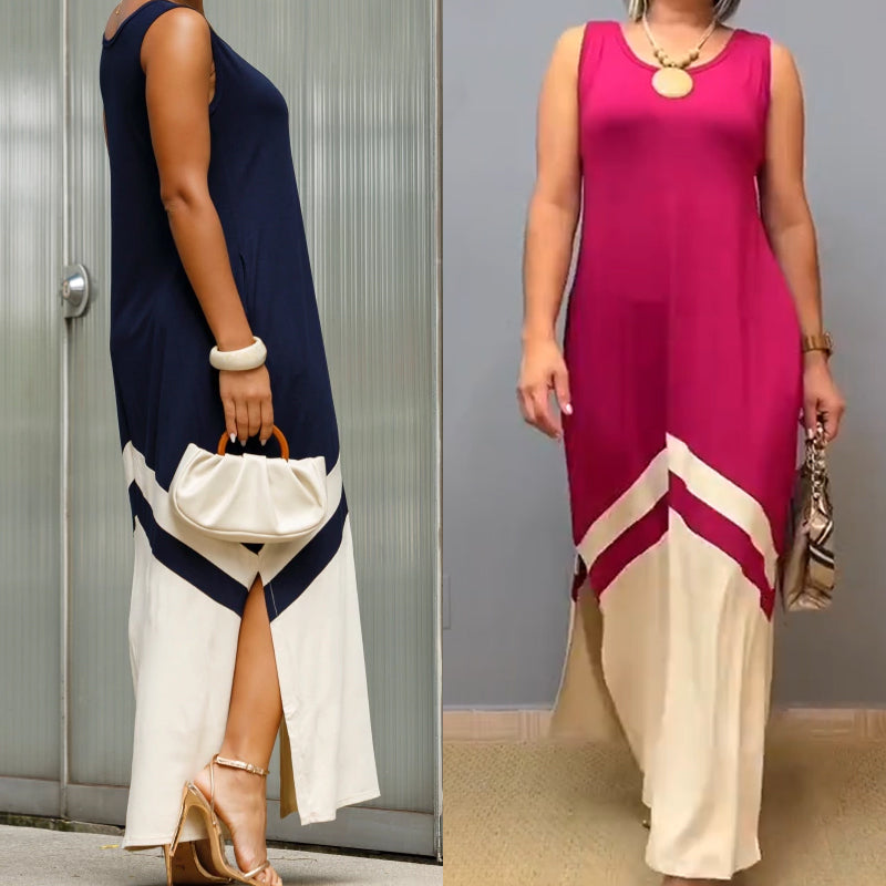 Trendiges ärmelloses Colorblock-Split-Kleid für Damen