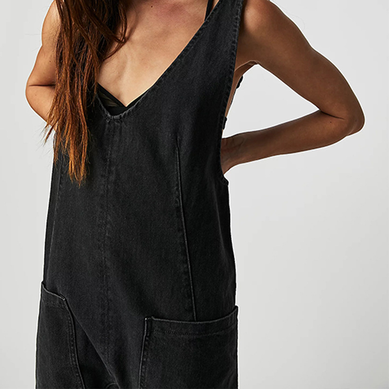 Damen Lässige V-Ausschnitt Lange Denim-Overalls