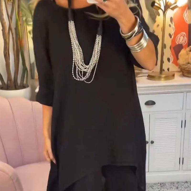 VIELSEITIGES ZWEITEILIGES SET: Dieses stilvolle Set besteht aus einem einzigartigen asymmetrischen Oberteil und einer passenden Hose und bietet unzählige Kombinationsmöglichkeiten. Einfach mit anderen Basics aus Ihrer Garderobe kombinieren – für vielseitige Looks.