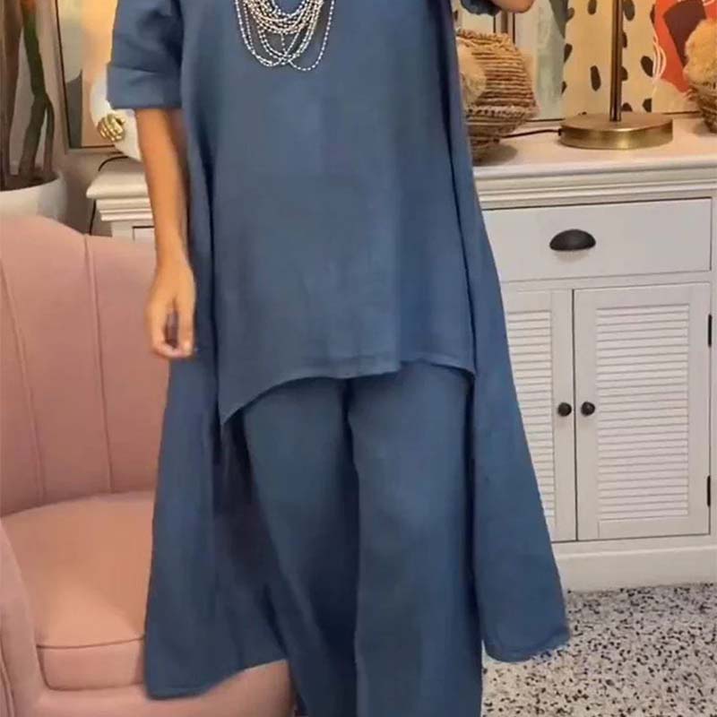 ANGENEHMER BAUMWOLL-LEINEN-MIX: Gefertigt aus einem atmungsaktiven Baumwoll-Leinen-Mischgewebe bietet dieses Set ganztägigen Tragekomfort und ein angenehm kühles Tragegefühl – perfekt für warmes Wetter.