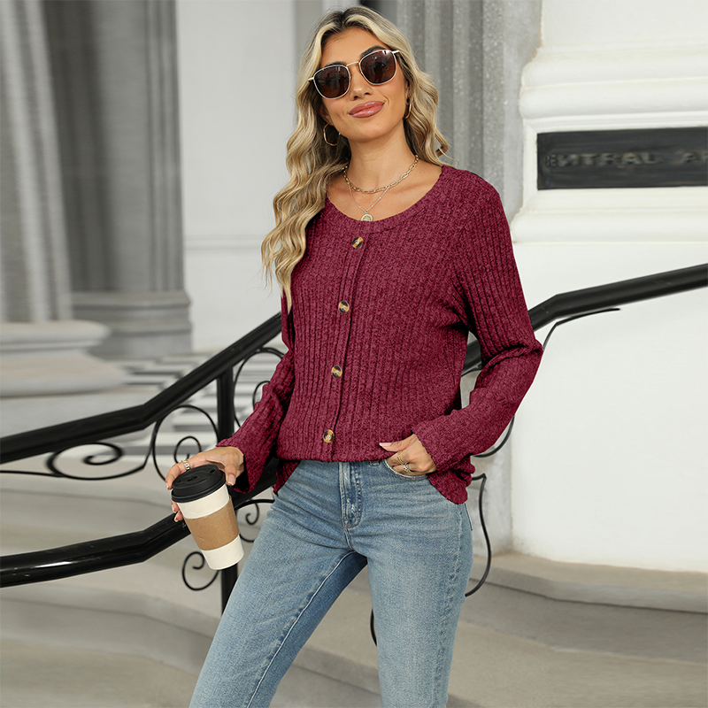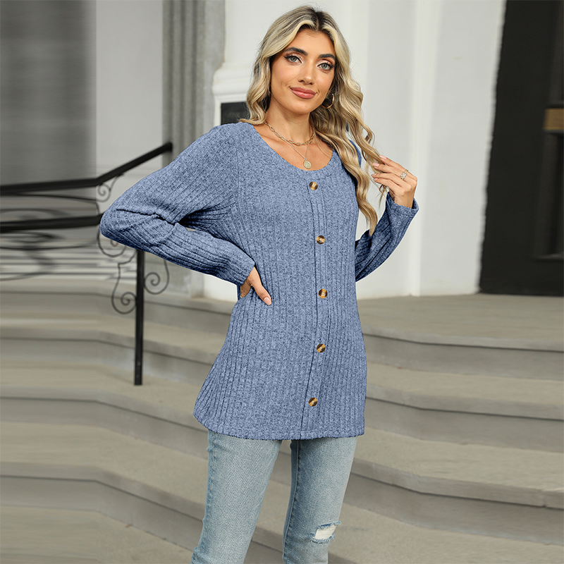 Bis zu 49 % Rabatt!đ„Damen-Oberteil mit Knopfleiste und langen Ărmeln im lockeren Schnitt